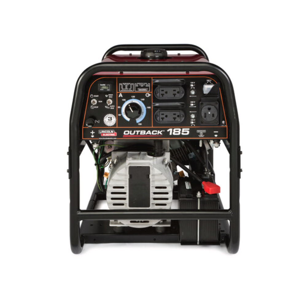 - La soldadora impulsada por motor Outback 185 tiene soldadura con electrodo revestido de DC portátil con energía de generador de AC.